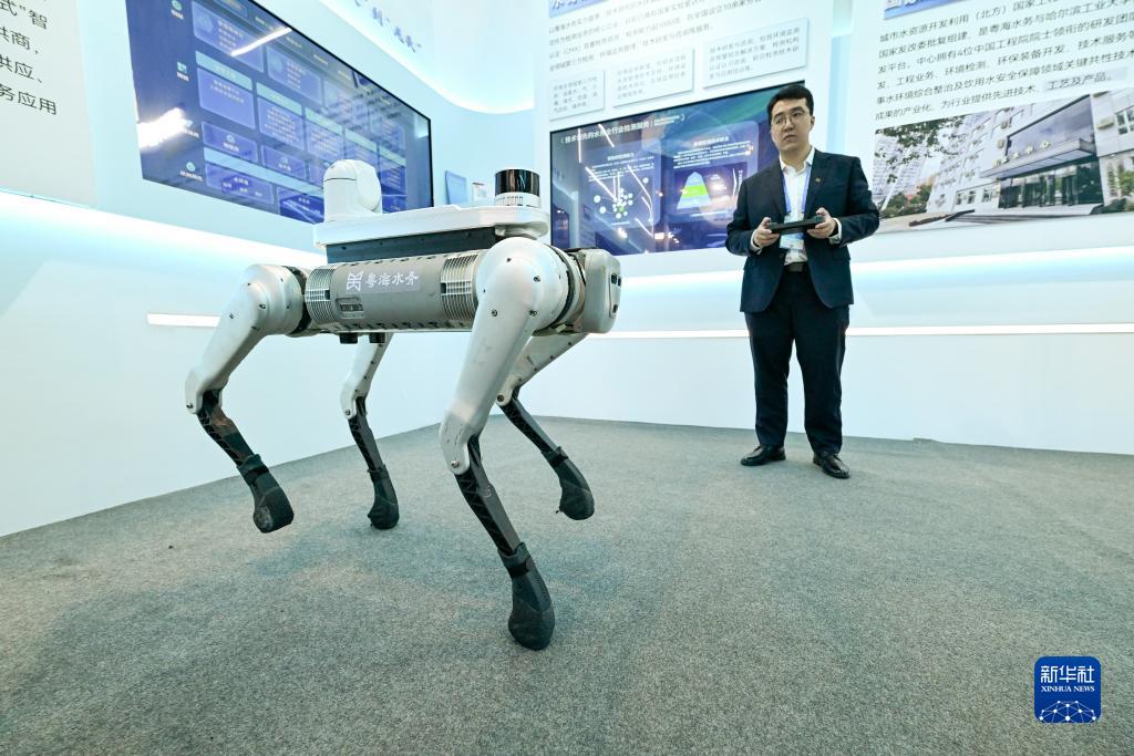 11月15日,在第二十五届高交会上,工作人员展示用于巡检的四足机器人。