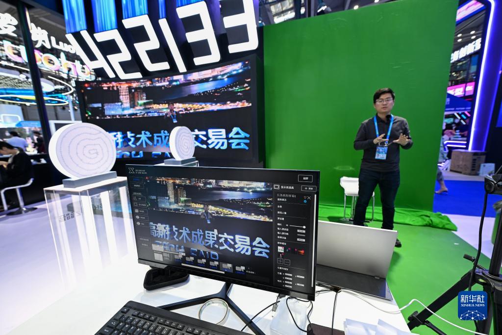 11月15日,在第二十五届高交会上,工作人员展示一款使用人工智能和即时渲染算法合成的虚拟直播间。