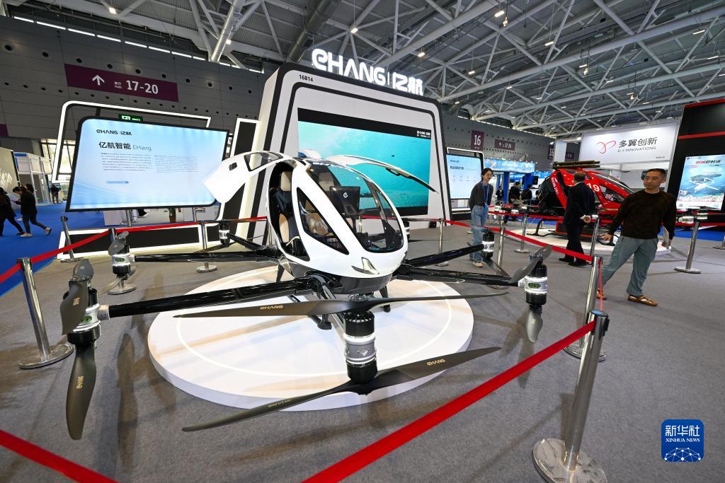 11月15日,在第二十五届高交会上,观众参观亿航无人驾驶载人电动垂直起降航空器。
