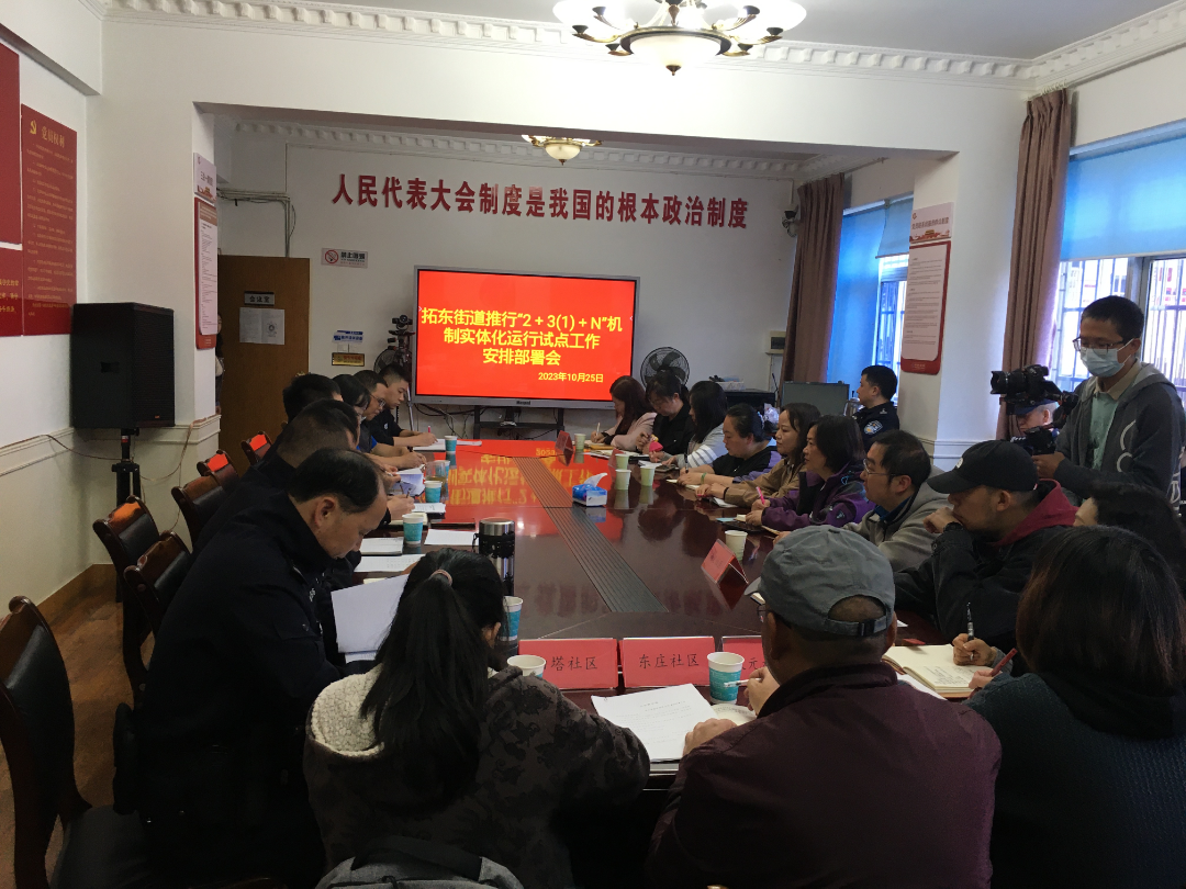 近期,拓东街道办事处、拓东路派出所、董家湾派出所、拓东司法所联合召开“2+3(1)+N”机制实体化运行工作培训会。会议集中传达了市委政法委相关工作要求,并对试点工作进行了具体安排。