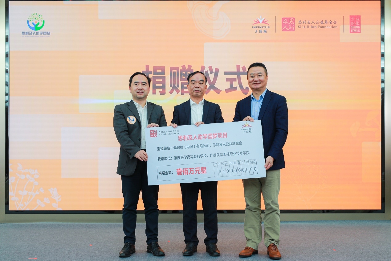 本次十年之约活动,“思利及人”公益基金会捐赠100万元,在广东肇庆医学高等专科学校中药学专业、广西质量工程职业技术学院食品检验检测技术专业开设两个“思利及人助学圆梦班”,为健康养生行业培养更多优秀人才,助力健康中国战略。