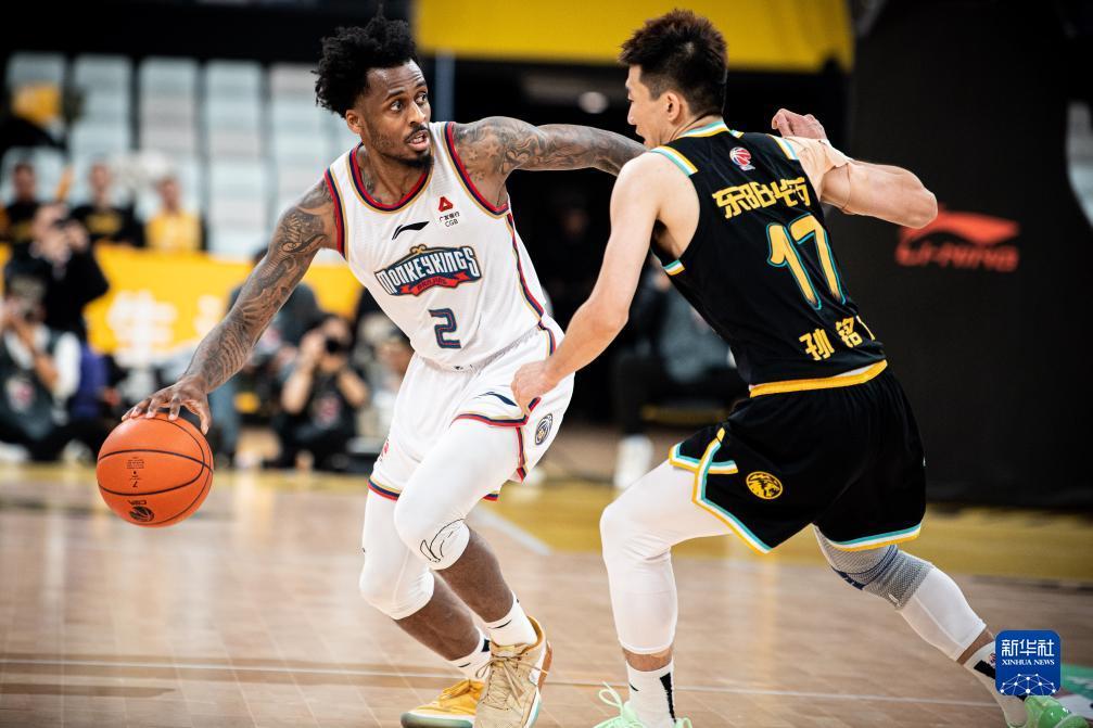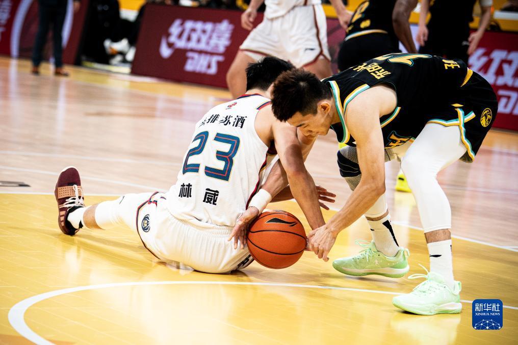 12月4日,南京头排苏酒队球员布莱克尼(左)在比赛中突破。新华社记者 江汉 摄