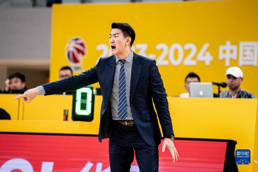 12月4日,浙江东阳光药队主教练王博在比赛中指挥。新华社记者 江汉 摄(江汉)