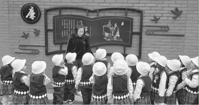 在成华区双桥子街道双园巷家风家训主题文化长廊,老师给儿童讲“廉”文化的小故事。