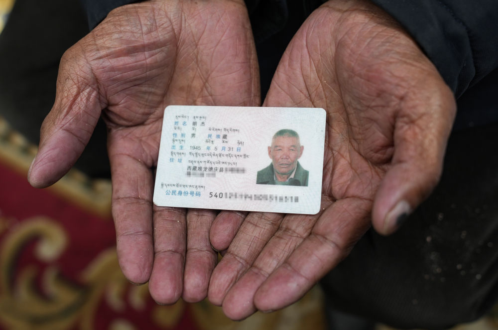朗杰展示自己的身份证(3月13日摄)。新华社记者 晋美多吉 摄