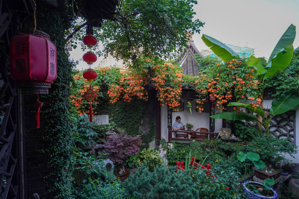 扬州市民杜祥开用自家平房与天井打造出“祥庐”(2023年6月14日摄)。新华社记者 李博 摄