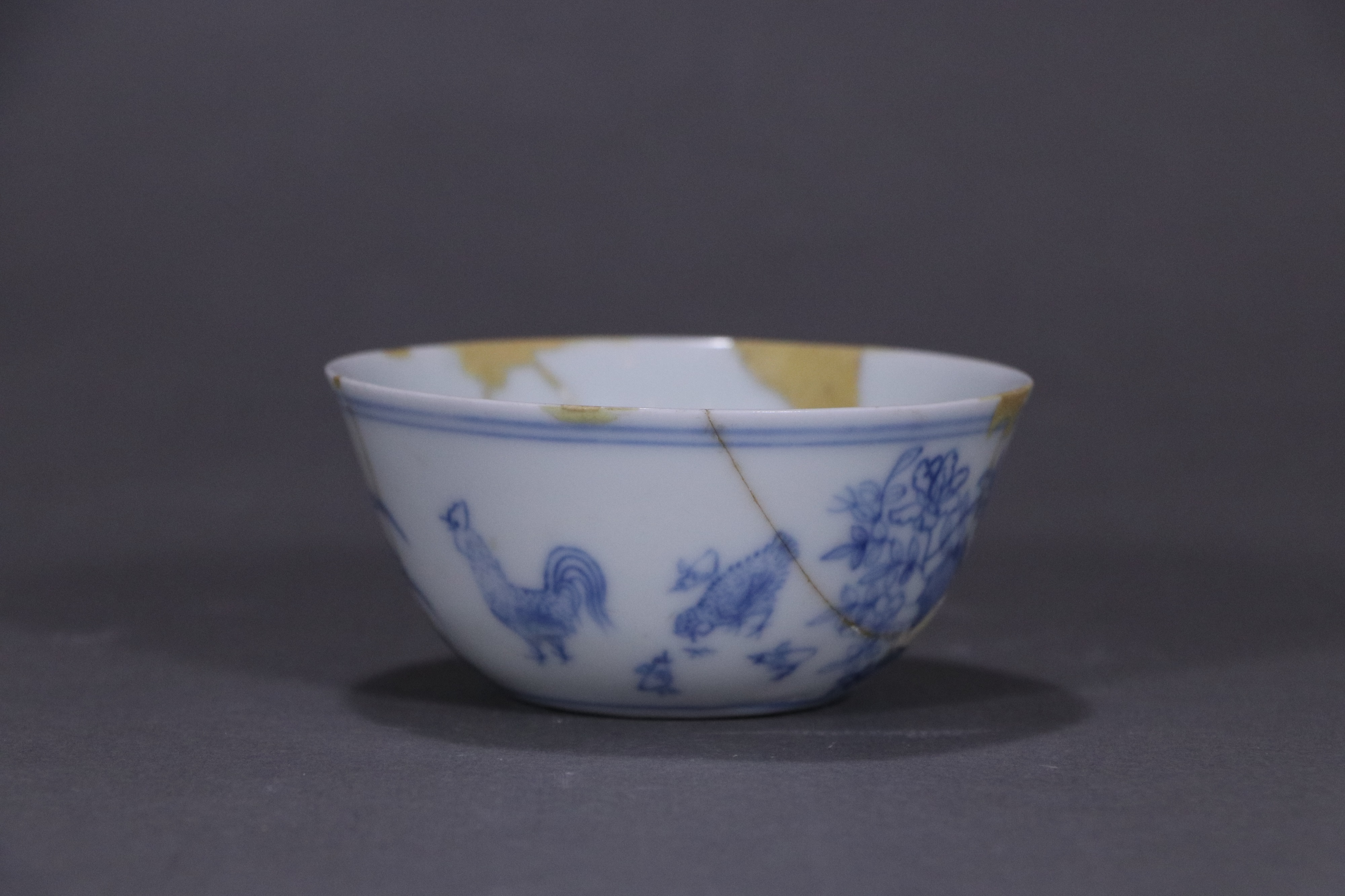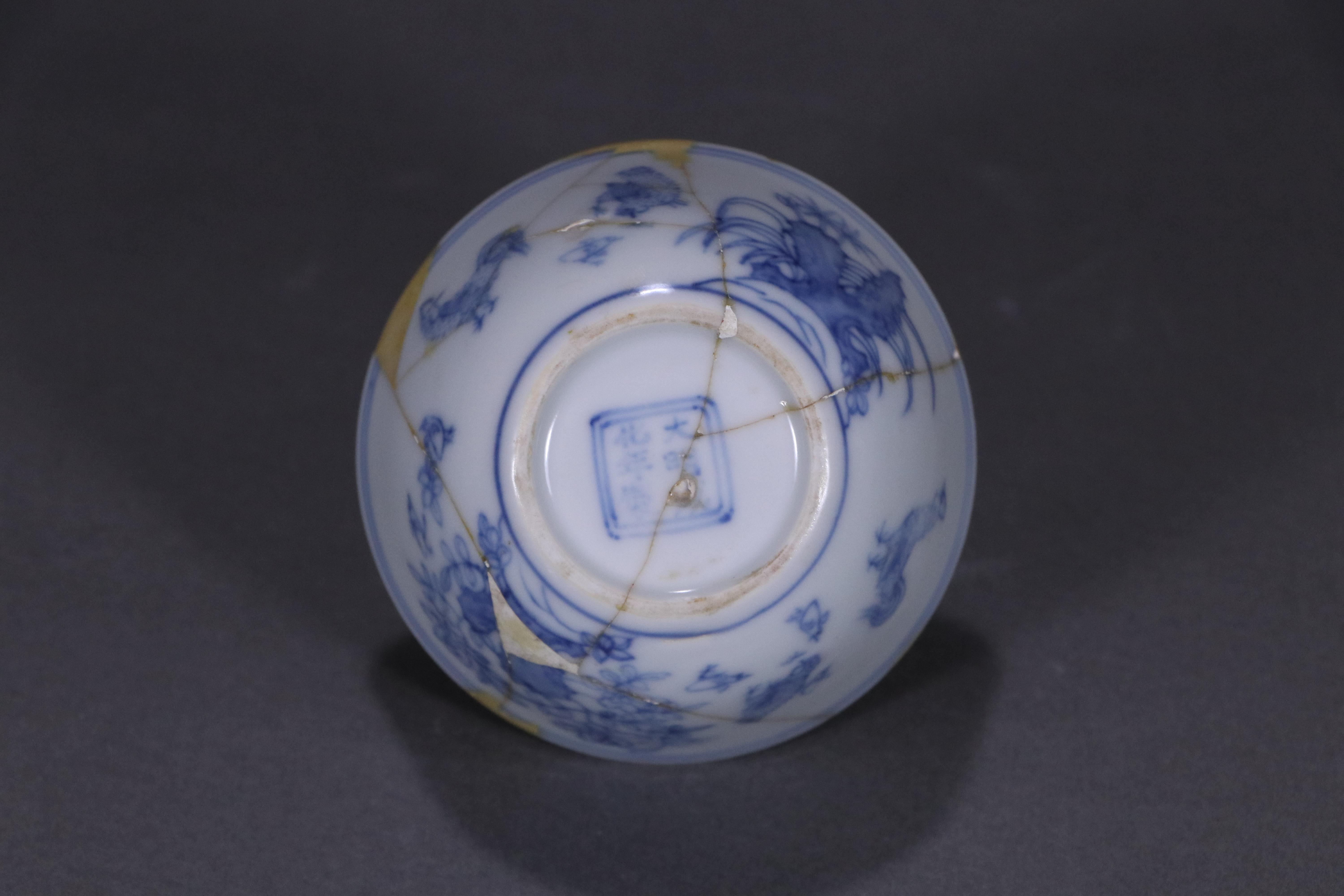 △ 明成化青花鸡缸杯(斗彩半成品)底款写有“大明成化年制”字样