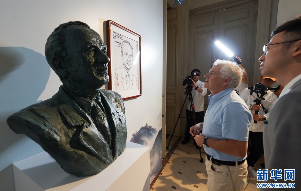 原标题:著名艺术家袁熙坤创作的顾拜旦雕塑在巴黎中国之家揭幕