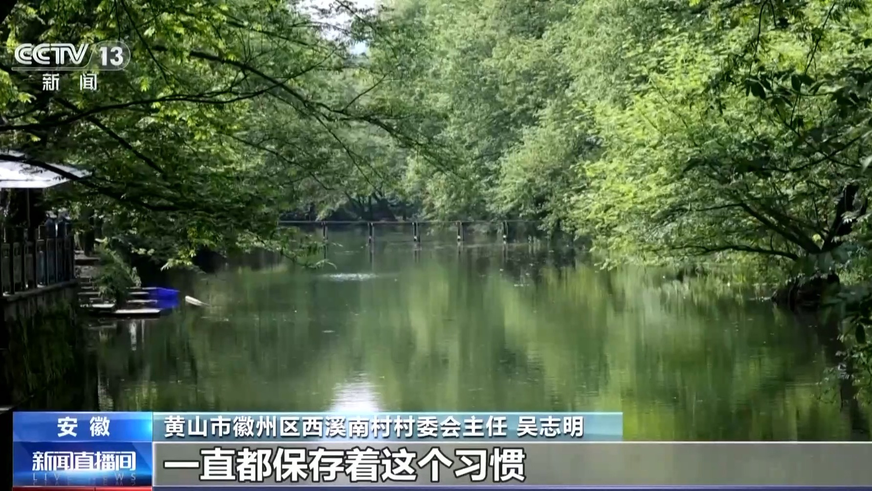 安徽省黄山市徽州区西溪南村村委会主任 吴志明:枫杨树长势很快,只要十五天左右就能成为一片绿色。夏天这个叶子可以遮阳,我们脚下的水可以把热量带走,所以形成了一个生态空调。