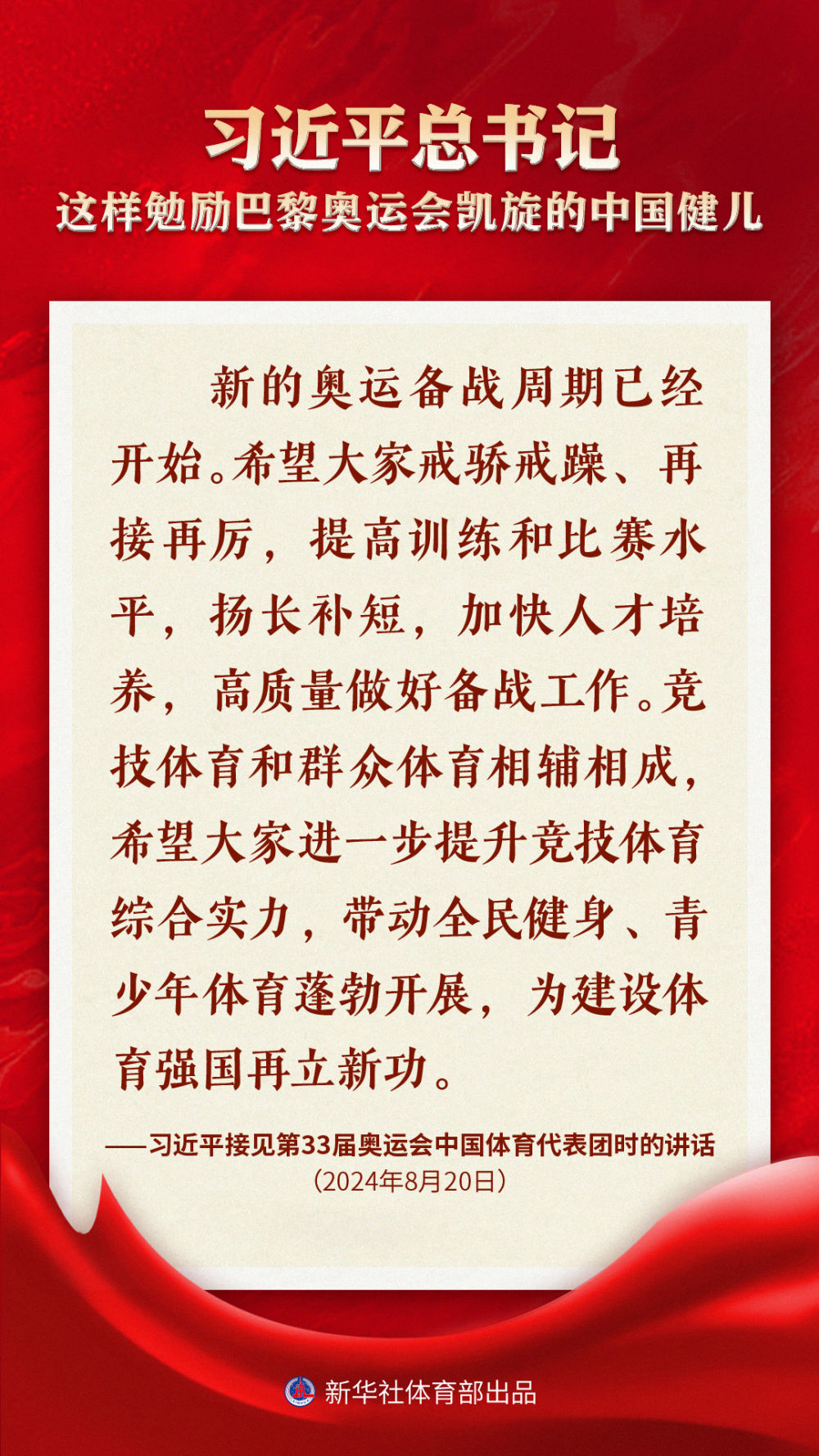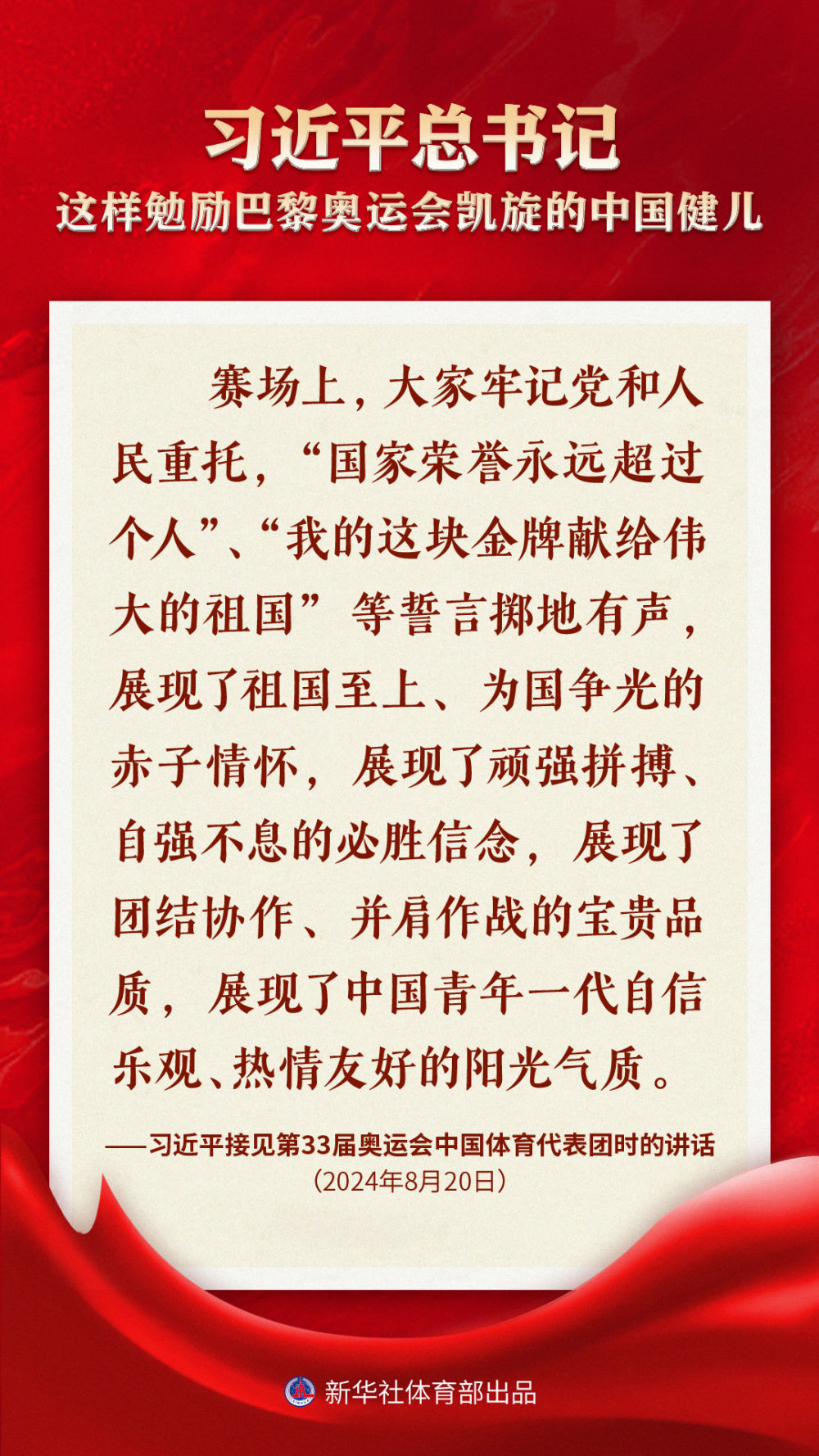 原标题:金句|习近平总书记这样勉励巴黎奥运会凯旋的中国健儿