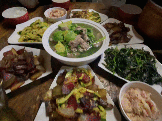 在广西河池市南丹县里湖瑶族乡八雅村巴哈屯,村民李军一家在吃晚饭(8月28日摄)。