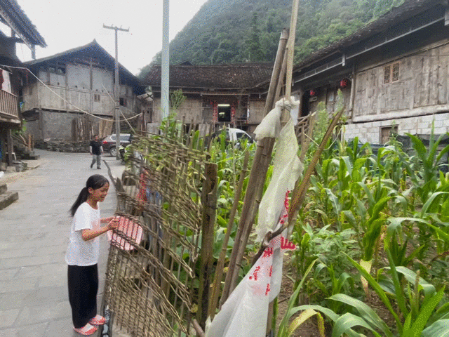 在广西河池市南丹县里湖瑶族乡八雅村巴哈屯,一位村民准备用塑料布盖装着玉米的桶(8月28日摄)。
