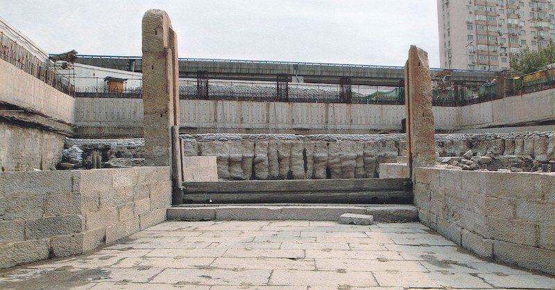 澎湃新闻联动长江经济带和长江沿线共13省(区、市)主要媒体,近日陆续推出“文化中国行|长江之歌”之《溯江而上》专题报道,从长江下游溯江而上,对长江文化进行报道。本期走进的是地处上海市中心的元代水闸遗址。
