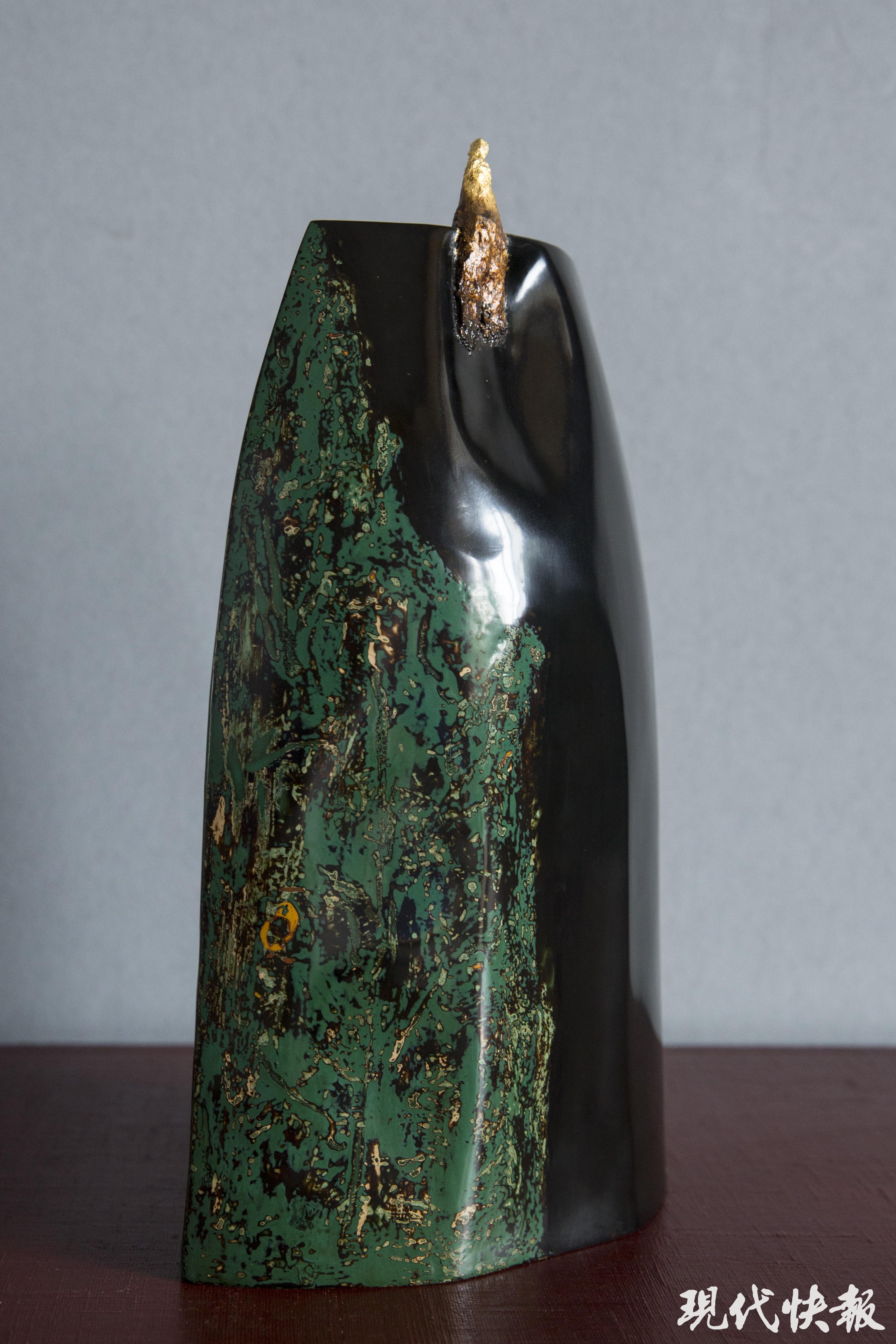 彼时,张耿亮学的是产品设计,还没有全身心地投入漆艺上。但从那时起,他便开始尝试创作一些脱胎漆立体作品。“脱胎立体作品没有时间的沉淀很容易变形,所以每一步都需要精雕细琢,静下心来慢慢做。”三年后,他创作的漆立体作品《乐—山》入选第二届全国工艺美术作品展,并被中国国家博物馆收藏。这是张耿亮首次将个人对生活的感悟融入艺术创作,并通过漆这种材料加以表达的作品。自那之后,他对漆艺更加投入了。
