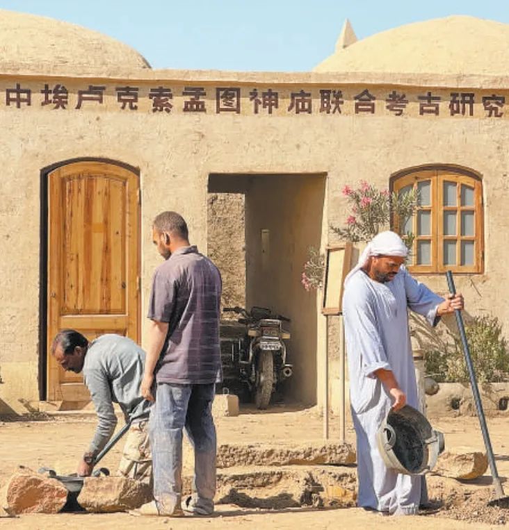 中埃(及)卢克索孟图神庙联合考古项目在考古发掘、文物保护等方面,不断统一技术标准,互学互鉴理念方法,推动神庙实地景象和出土文物重现于世人面前。图为工作人员在项目现场进行发掘清理工作。新华社记者 王东震 摄