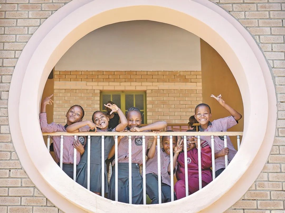 位于博茨瓦纳南部的莫帕尼小学是中国援建的现代化学校,当地儿童的教育条件因此得到改善。图为莫帕尼小学课间休息的学生们。新华社记者 韩旭 摄