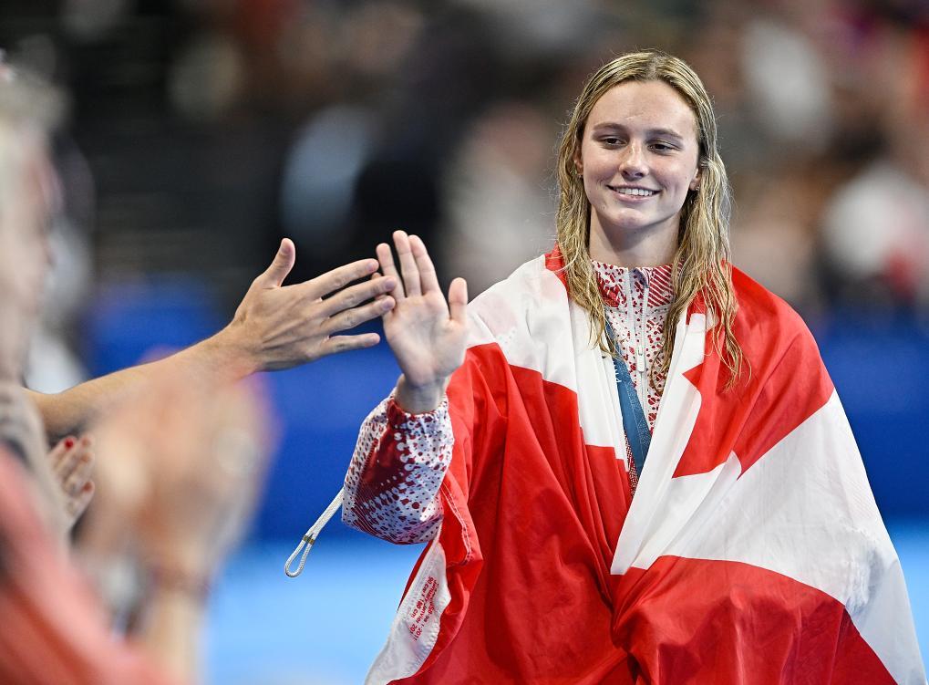 资料图:加拿大选手麦金托什在巴黎奥运会女子200米混合泳颁奖仪式上。新华社记者 王鹏 摄