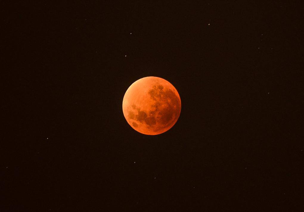 2018年7月28日在内蒙古自治区乌兰察布市拍摄的月全食。(马劲 摄)