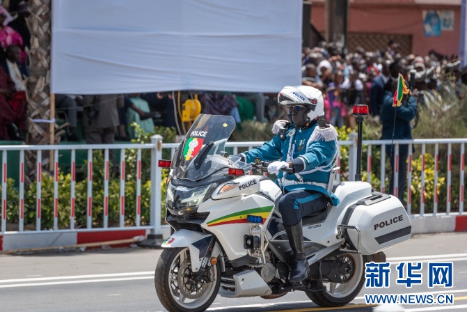 4日,在塞内加尔首都达喀尔市中心举行的塞内加尔独立日阅兵式上,中国制造的礼宾摩托车作为护卫方队的重要组成部分,赢得广泛关注。