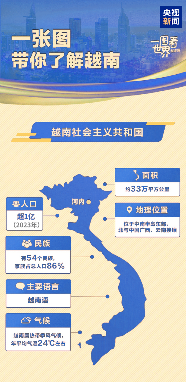 这里与华夏大地山水相依,两国人民“共饮一江水,早相见、晚相望”。75载悠悠岁月里,中越情谊早已超越地理上的毗邻,成为常来常往的好邻居、好朋友、好同志、好伙伴。让我们跟随习主席的步伐,去这个亲如手足的邻居家串个门。