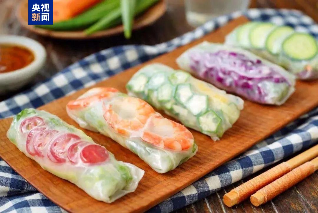 越南春卷,薄皮裹满馅料,一口咬下,满是清爽。