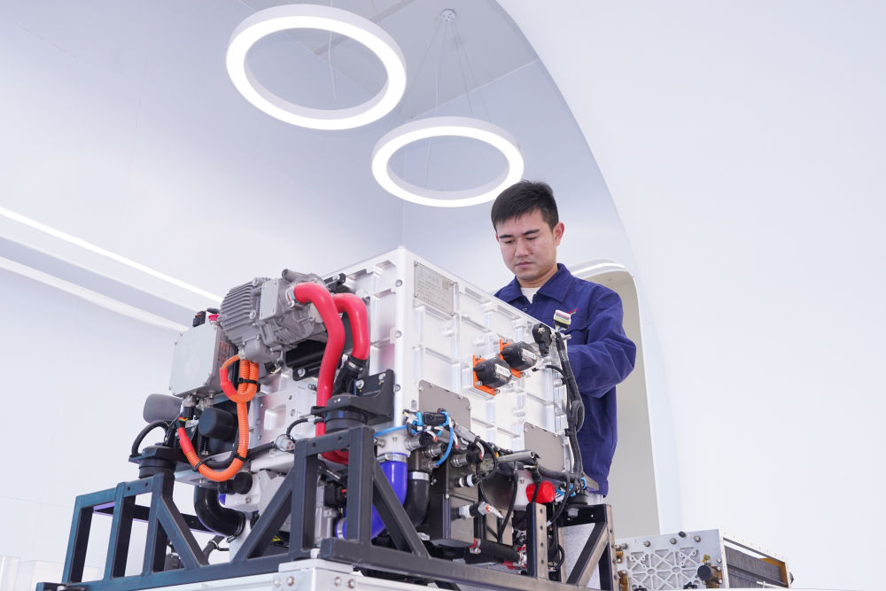 这是3月11日在安徽元隽氢能科技股份有限公司拍摄的氢燃料电池。新华社记者 杜宇 摄
