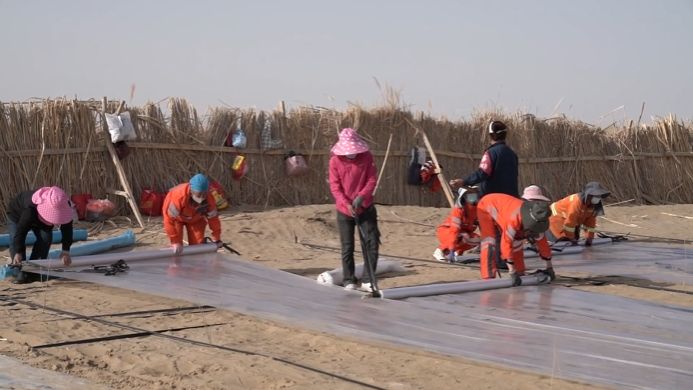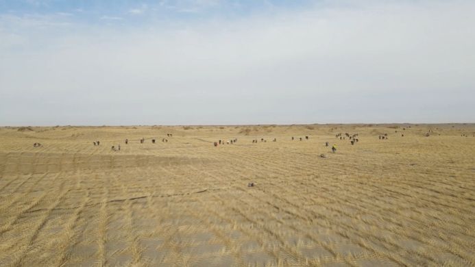 新疆和田地区民丰县林草局副局长贾磊介绍,民丰县地处塔克拉玛干沙漠南缘,是风沙危害比较严重的地区,常年受到风沙的侵害。“我们于去年完成了‘锁边’,今年我们要在‘锁边’区域内继续实行治理,主要采取一些生物治沙模式,变‘锁边’为‘织网’,让‘锁边’效果更加稳固。今年我们大概实施要有生物治沙,光造林面积达到10万亩,整个全年塔克拉玛干沙漠阻击战的任务是52.27万亩,我们今年想提前谋划,然后加快实施进度,可能我们今年要完成将近70万亩的治理任务。”他说。