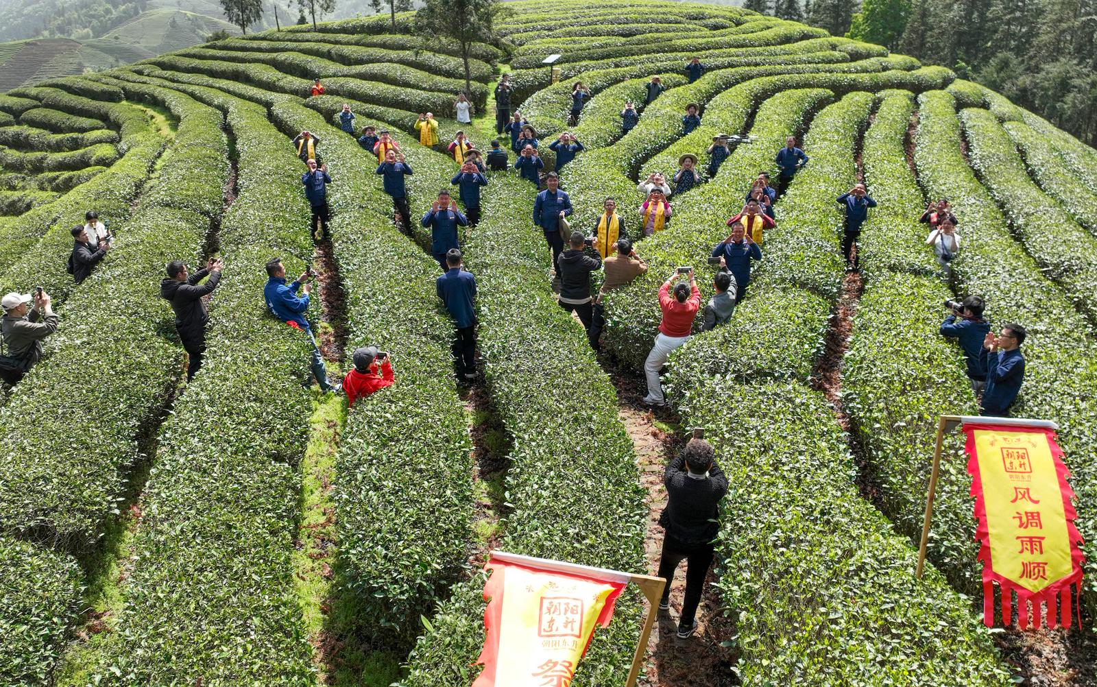 4月13日,武夷山市星村镇朝阳村茶农举行喊山采茶仪式。邱汝泉/摄