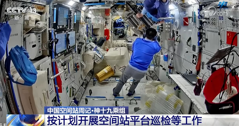 上周,乘组按计划开展了空间站平台巡检,完成了再生生保系统相关设备紧固件及管路检查与维护、组件更换等工作,确保站内水循环系统高效稳定运行。乘组对舱内各类物资进行了清点与整理,开展了站内环境清洁及垃圾转运存放等工作。