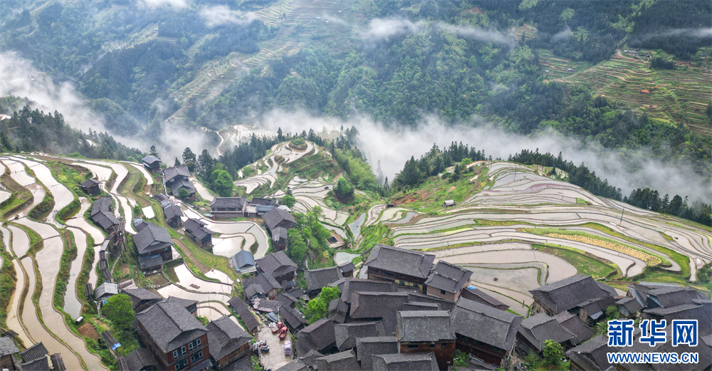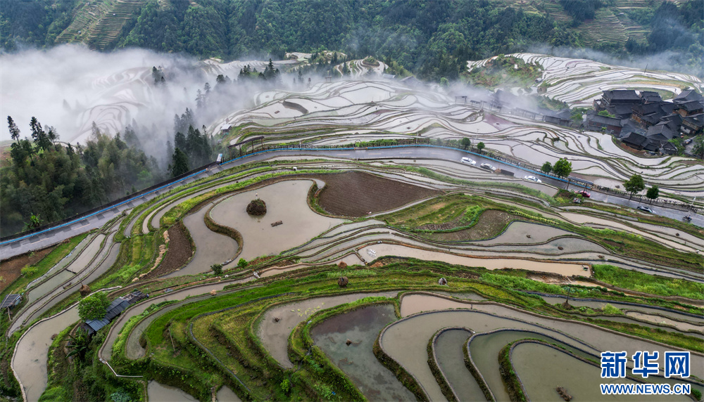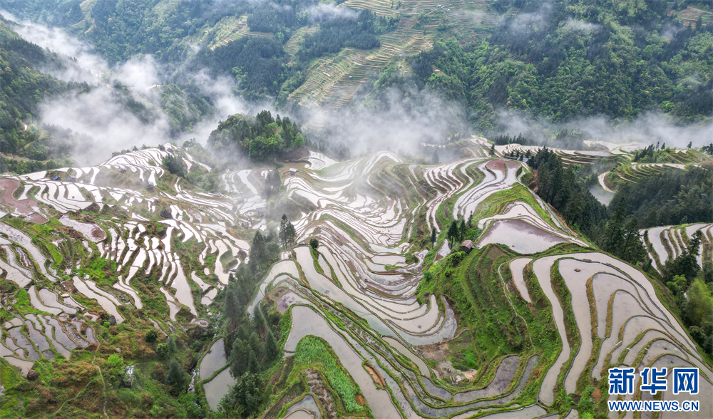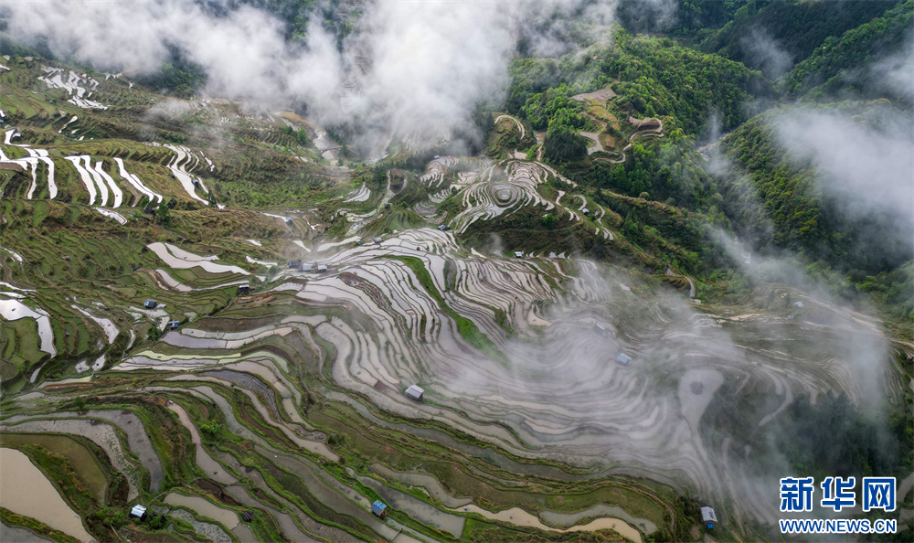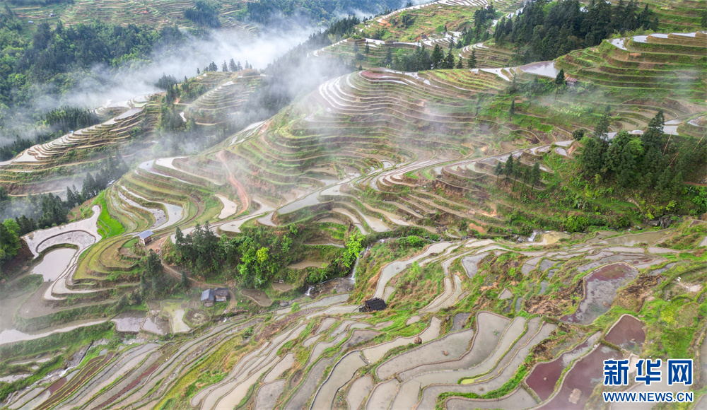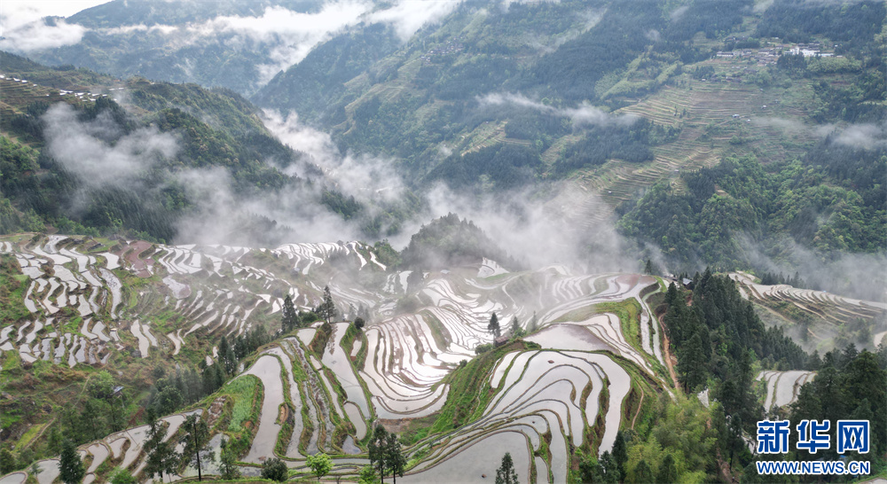 4月20日,在贵州省黔东南苗族侗族自治州从江县加榜乡加车村拍摄的梯田景色。新华网发(卢忠南 摄)