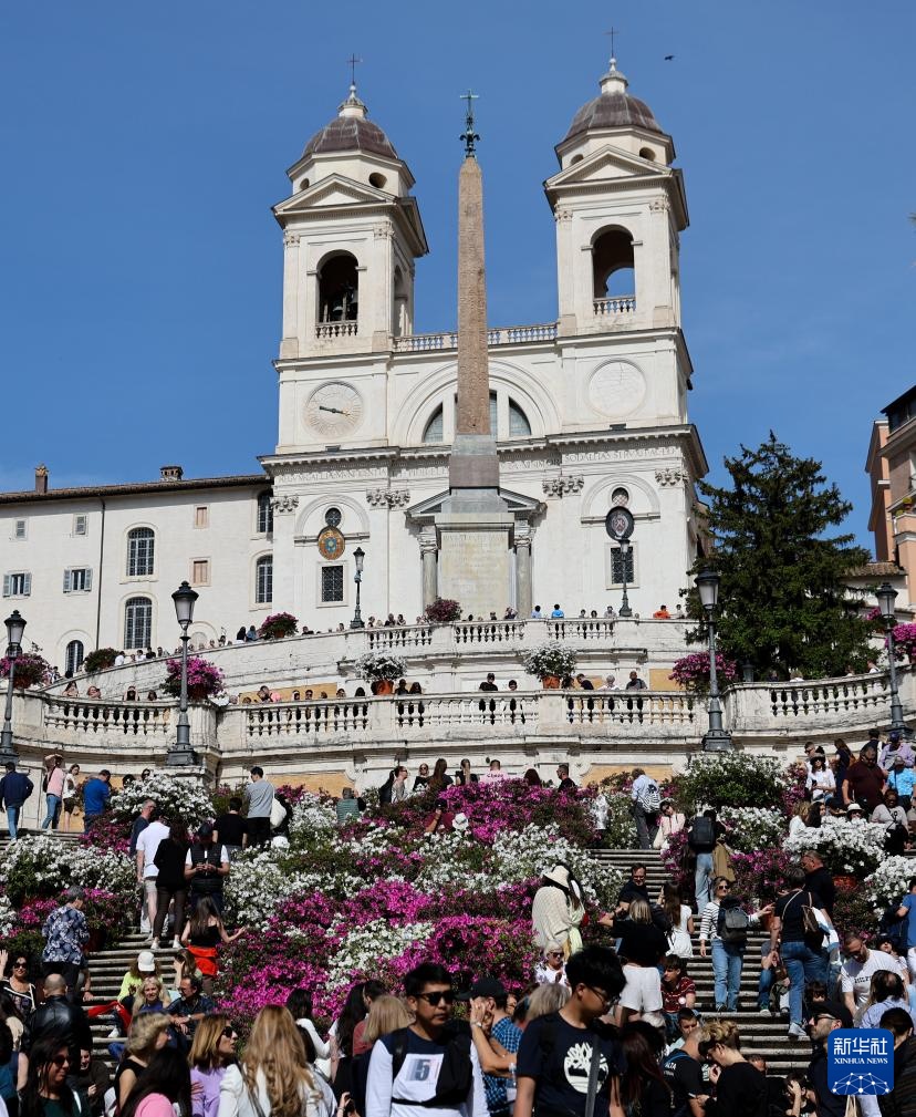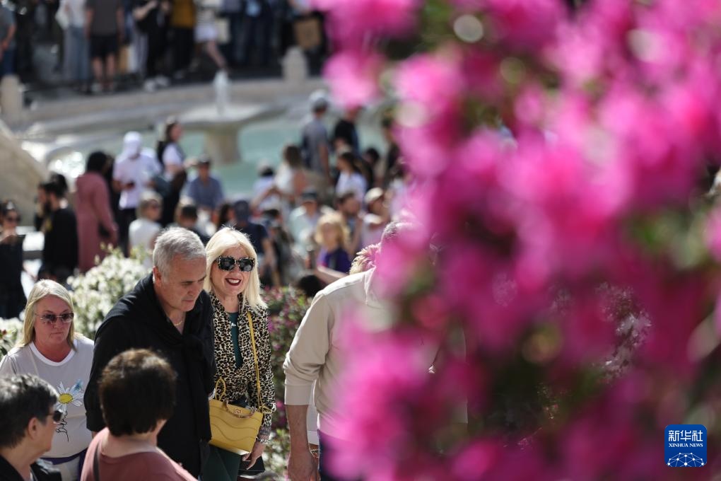 复活节假期期间,意大利首都罗马迎来客流高峰,人们来到斗兽场、西班牙广场等标志性景点,尽享假日时光。