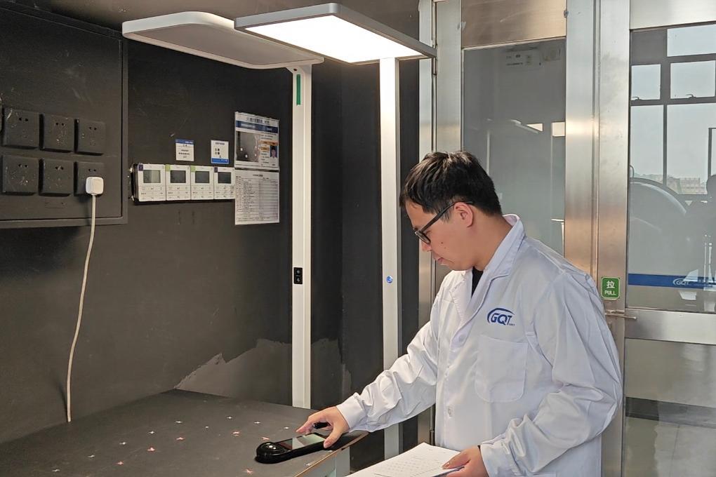 广州质量检验研究院工作人员对大路灯进行检测。新华社记者 徐弘毅 摄