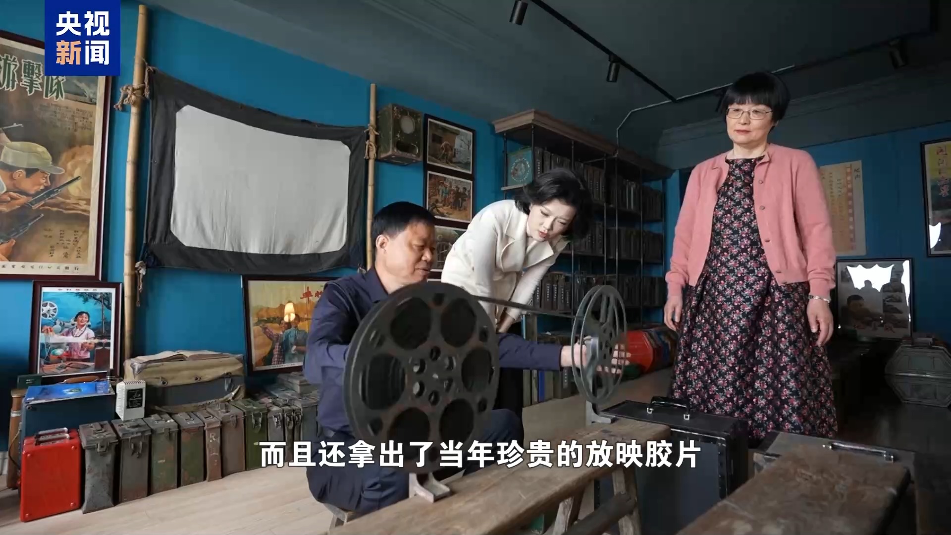 票发完了,主播来到了一家小型电影文化博物馆,它的主人是宋蕾。宋阿姨和丈夫乔伟叔叔因为电影相识。20世纪70年代,乔叔叔是一名电影放映员,酷爱看电影的宋阿姨则对放电影产生了兴趣。于是就这样,银幕上跳动的光影让两个年轻人的心越走越近,他们收获了爱情,也成了相伴一生的电影知己。2022年,宋阿姨利用业余时间,办起了这家私人的电影文化博物馆。