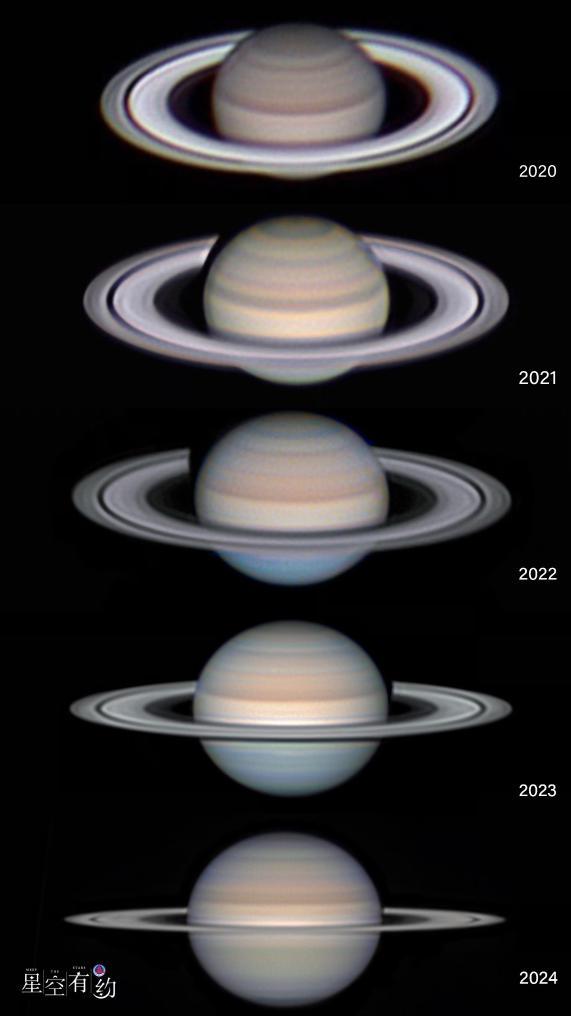这是连续5年在广东中山拍摄的土星光环变化(拼版)。(汉玲 摄)