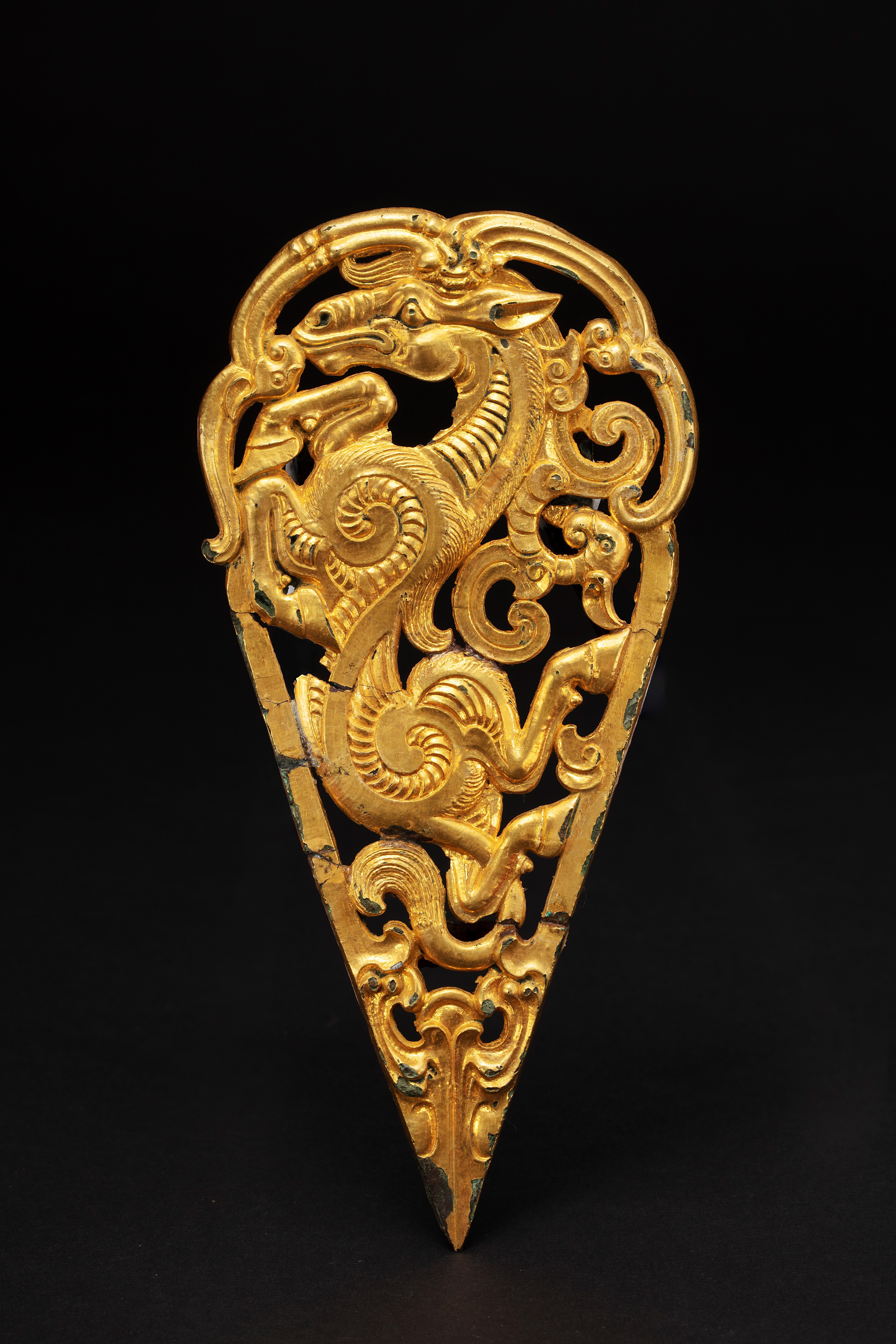 △西汉 青铜鎏金龙马当卢 济南市章丘区博物馆藏