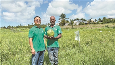 中国农业技术专家为巴巴多斯农户开展多种形式的技术培训。图为援巴巴多斯中国农业技术专家与当地农业技术工人合影。 本报记者 宋亦然摄