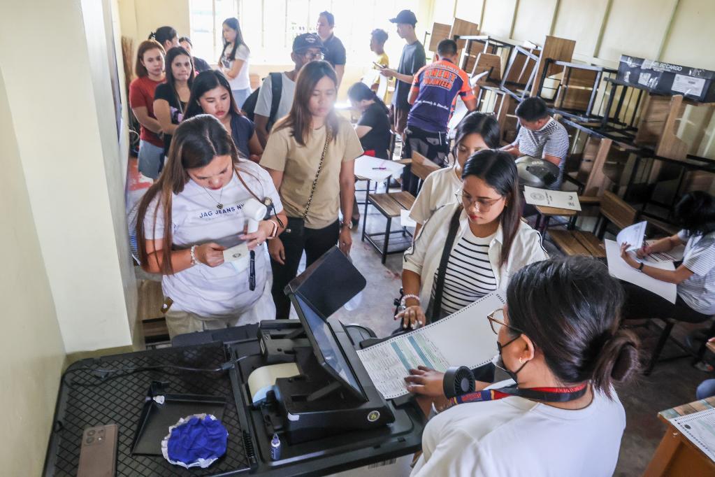 5月12日,在菲律宾奎松市,选民在投票站内参加投票。