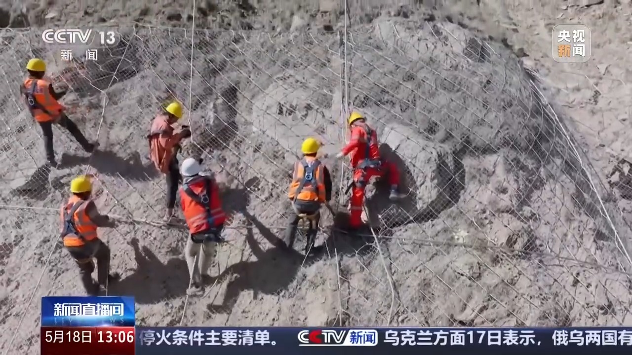 从山下往上看,一张张包住山崖的安全网,守护着过往车辆的安全。