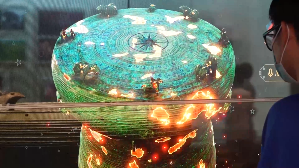 徐光霁说,“现在我们看到的铜鼓都是有氧化的这种铜绿色的形态,我们通过这个小动画也可以去除它的铜锈,让大家可以看到铜鼓刚刚铸造出来时金灿灿的样子。”