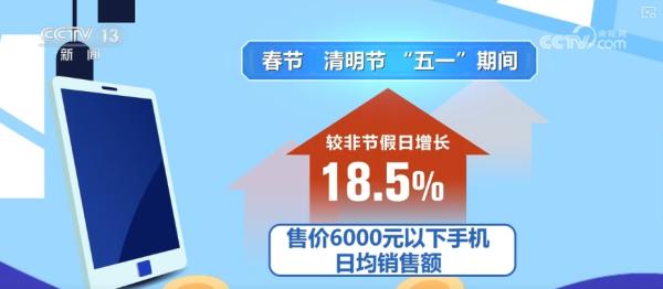 从购新数据看,在手机等数码产品补贴政策带动下,假日消费更加火热。春节、清明节、“五一”期间,售价6000元以下手机日均销售额较非节假日增长18.5%。
