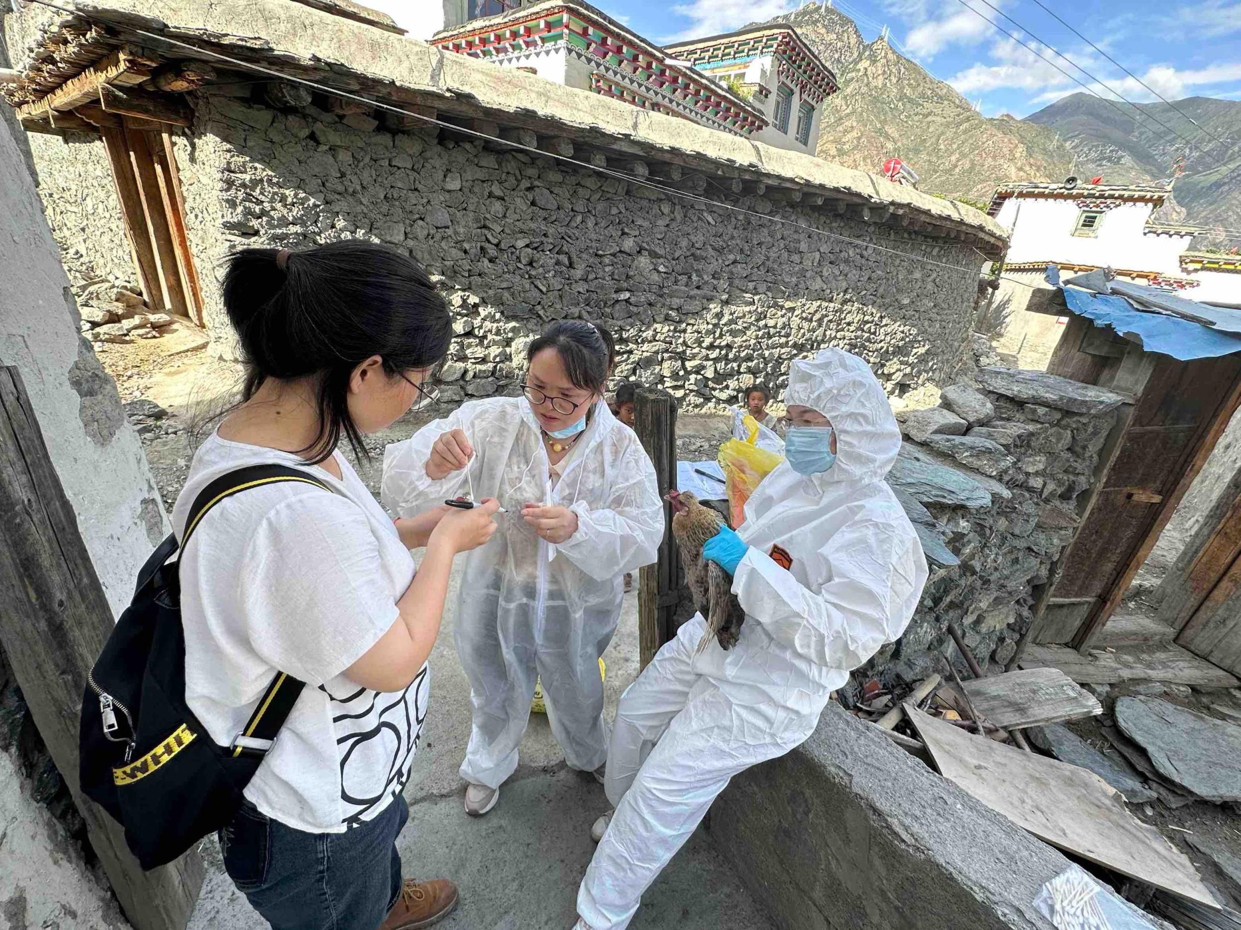 2022年,她牵头攻关“特色蛋用型藏鸡培育及高效生产模式研究与示范”课题时,恰逢孕期。别人孕期在家休养,她却怀着娃在鸡舍间奔波、爬上爬下,查看鸡群状态以及设施设备;生产后的第二天,她就开始在病床上工作了,医生查房看见后还打趣道:“你是来生娃的还是来工作的?”