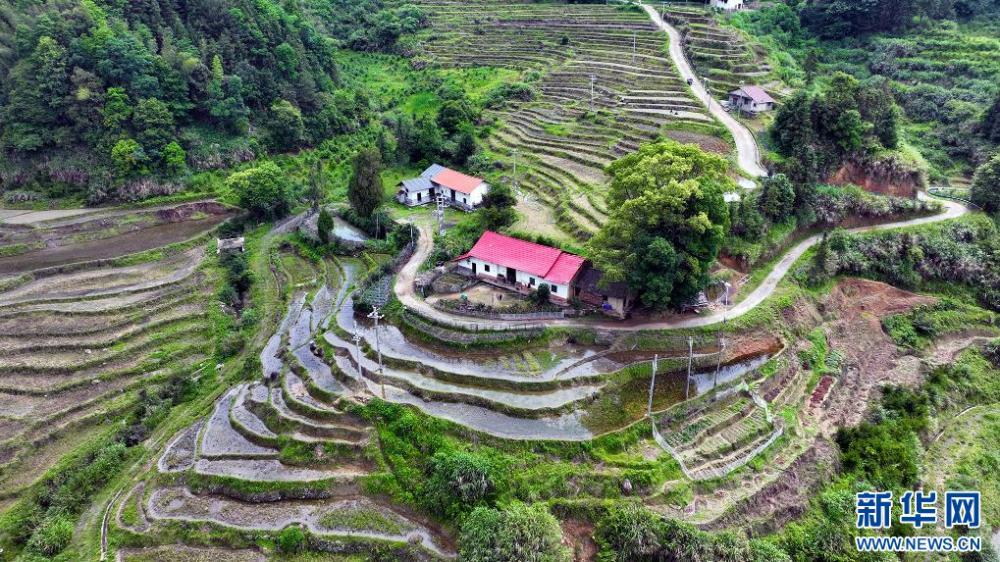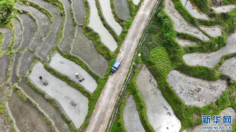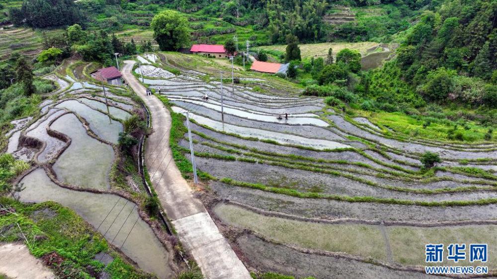 近日,江西省宜春市万载县白水乡老山村高山梯田陆续进入忙碌的耕作期。新华网发 邓龙华 摄