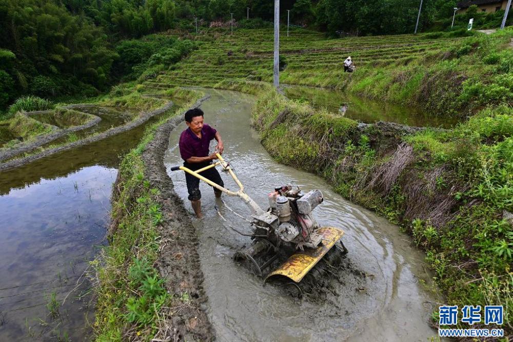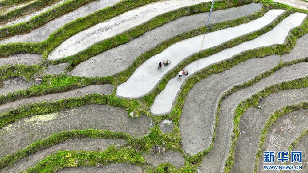 近日,江西省宜春市万载县白水乡老山村高山梯田陆续进入忙碌的耕作期。当地村民进行着犁田、砌埂、除草等农事活动,忙碌的身影与层层叠叠的梯田,勾画出一幅高山耕作图。