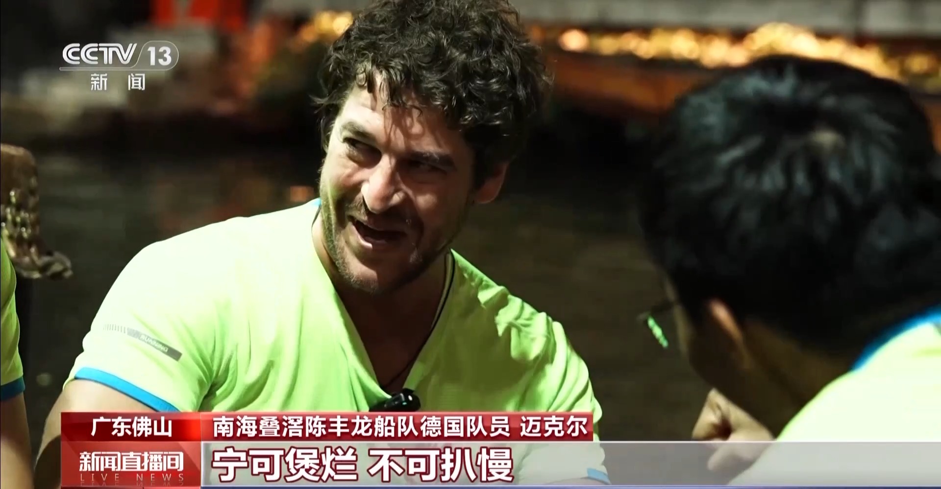 南海叠滘陈丰龙船队德国队员 迈克尔:队员们从一开始就把我当作他们中的一员,给了我很多帮助,让我很快融入队伍。有次我落水,身体甚至还没有露出水面,已经有两只手把我抓回船上了。我觉得文化是没有国界的,我们可以一起拥抱生活中美好的事物。