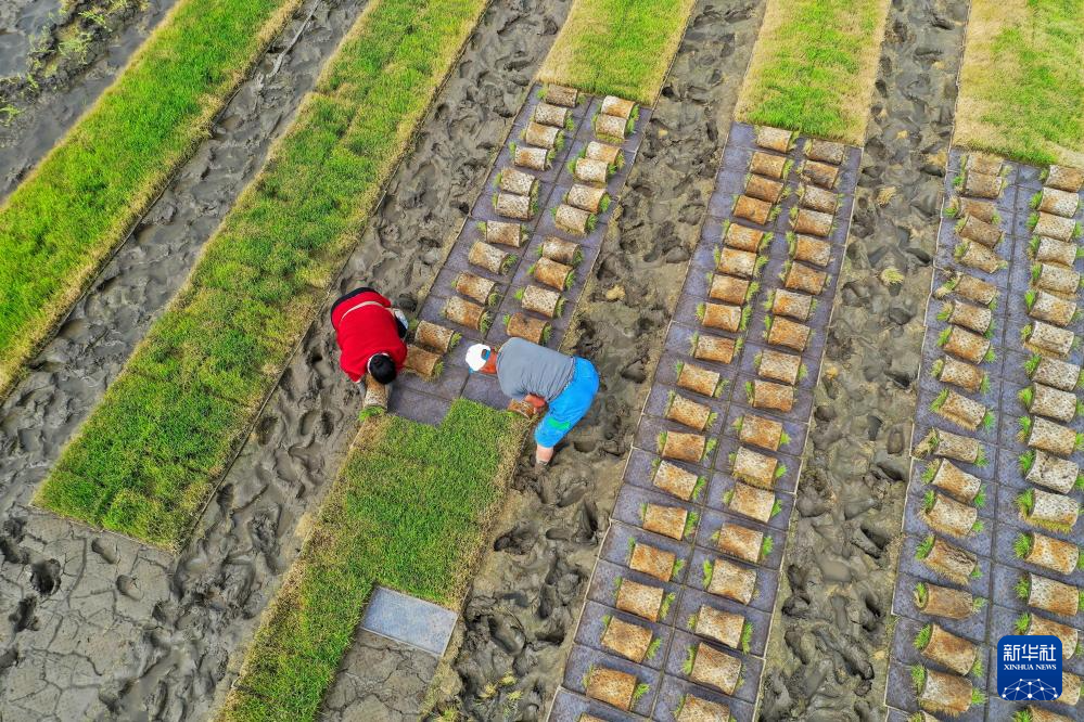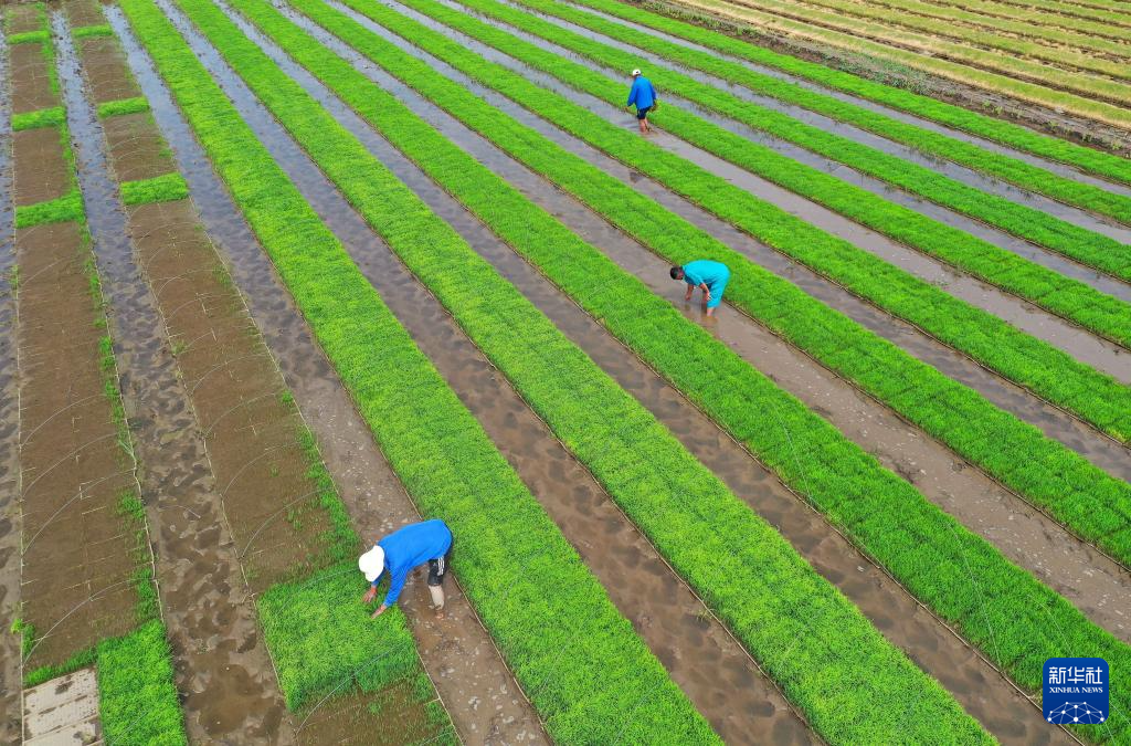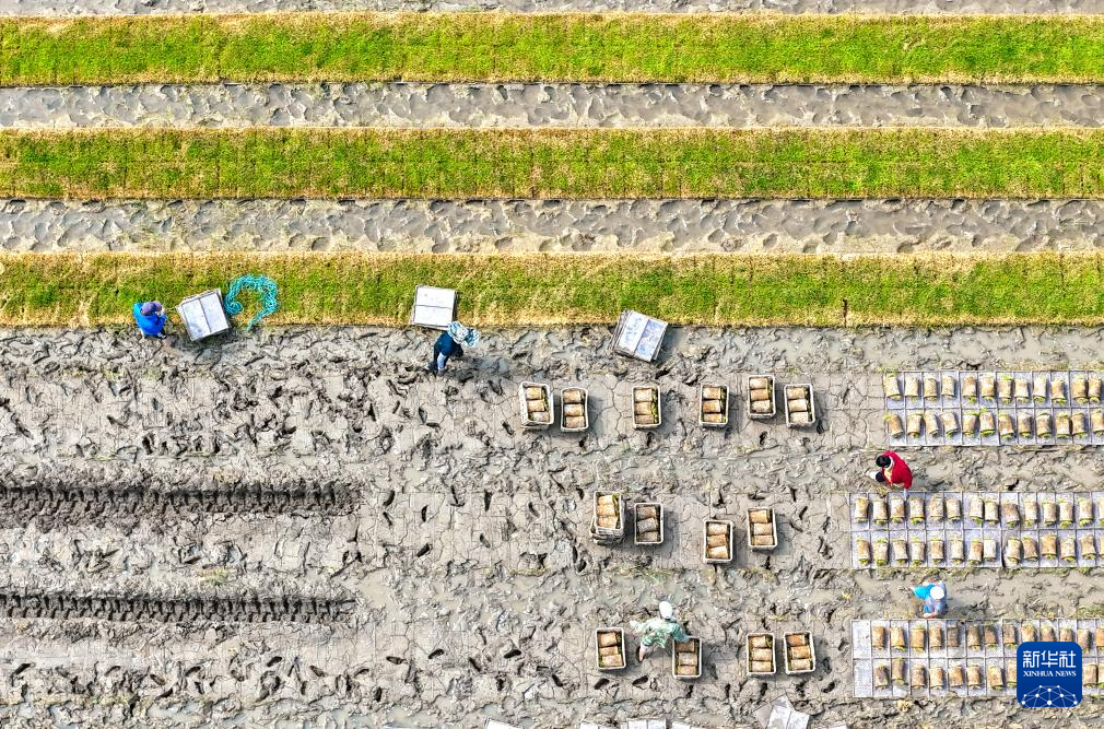 初夏时节,各地农民抢抓农时开展秧苗移栽作业,田间地头一派繁忙景象。