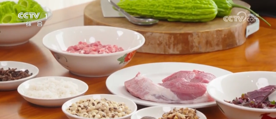 苦也是端午的味道。在广东河源,酿苦瓜是客家人餐桌上不可缺少的一道端午美食。苦瓜,先切成三厘米左右的段,挖去瓜瓤,“酿”表示“填入馅料”的意思,重要秘诀是馅料的选材。“祛湿的,香菇增香,红苋菜正是时令的蔬菜,苦瓜的功效是清热解毒降火。”当地商家介绍。
