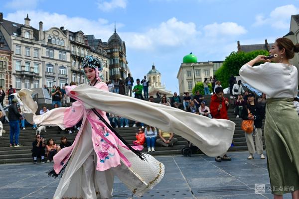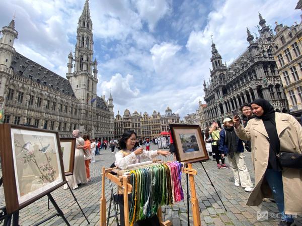6月9日下午,一场快闪活动奏响了“文明遇·鉴:中国大运河文化江苏周”序曲。在布鲁塞尔艺术山上,江苏民乐《好一朵茉莉花》和惊艳的锡剧戏服起舞,引得当地市民和游客驻足围观。在布鲁塞尔标志性大广场上,来自江苏大运河畔的旖旎苏绣,让欧洲民众沉浸式体验了江苏非遗的独特魅力。
