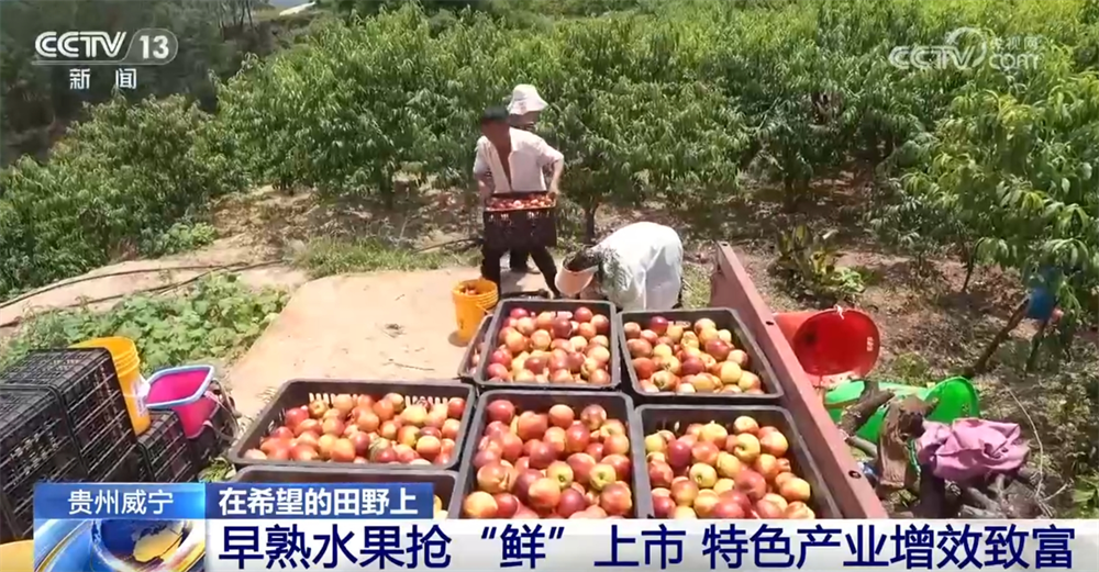 在贵州省毕节市威宁县,多地种植的车厘子和油桃迎来丰收季。当地充分利用强光照、昼夜温差大的气候优势,大力发展早熟特色水果产业,错峰上市销售,促进农户增收。
