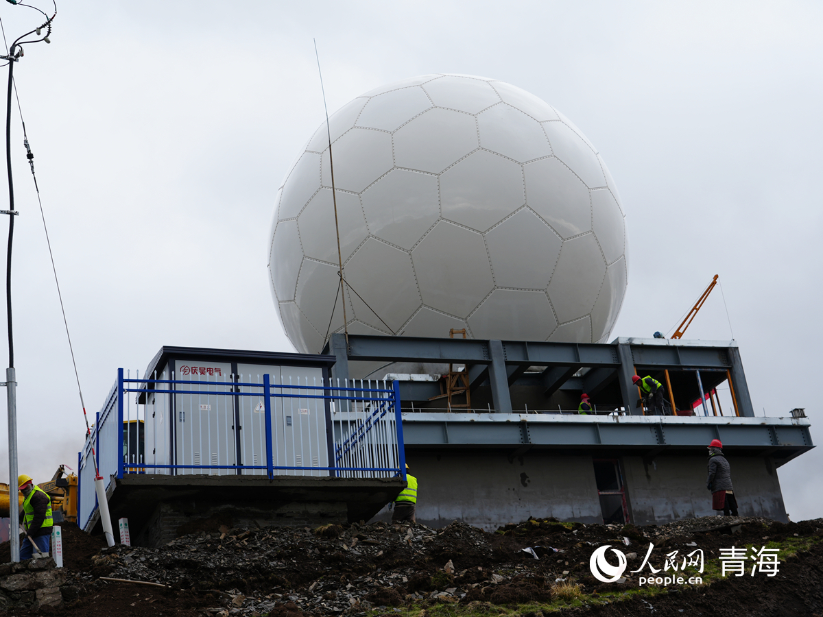 三江源核心区首部高速大天线天气雷达项目已进入完工阶段。人民网记者 杨启红摄