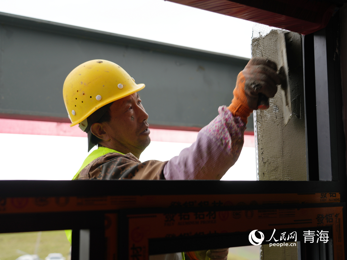 果洛新一代天气雷达项目施工现场,工人正抓紧时间施工。人民网记者 杨启红摄